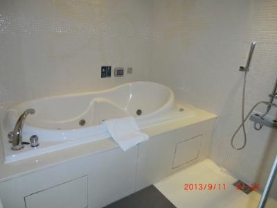 ★それに比べてバスタブの方は水の出がイマイチなのに加え、シャワーもカランも水と熱水のブレンドがうまくいっておらず、丁度良いお湯ではなく、熱めのお湯とぬるめのお湯が「交互に」出てくる…。
