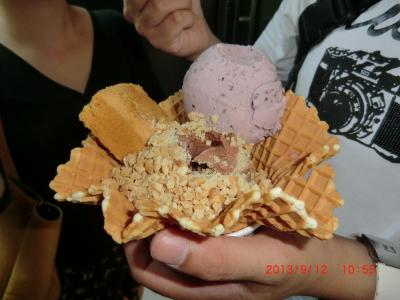 この菓子店の外側に独立して、タピオカミルクティーやカフェオレを売るドリンクショップと、アイスクリーム店が併設していて、地元の人や日本人、本土からの中国人で大人気。