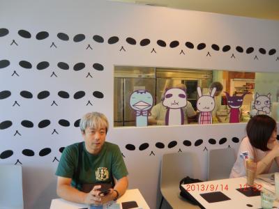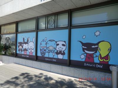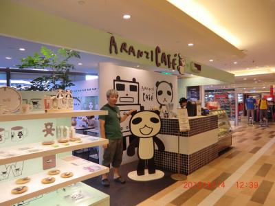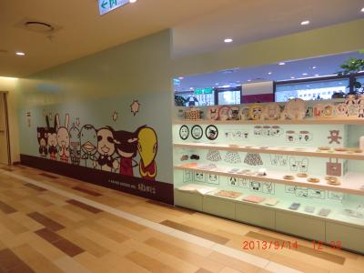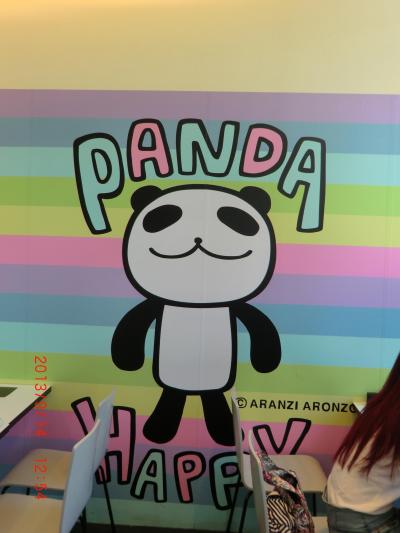 誠品書店へ行くのに「涼しいだろう」と通り抜けようとした阪急百貨店で、看板を発見!!「ここかー!」と4Fへ行ってみると、ありました、ありました、パンダの看板と、キャラクター達が拍手をしている壁画(?)!嬉しくなって、私も拍手をしている所を写真に撮りました。