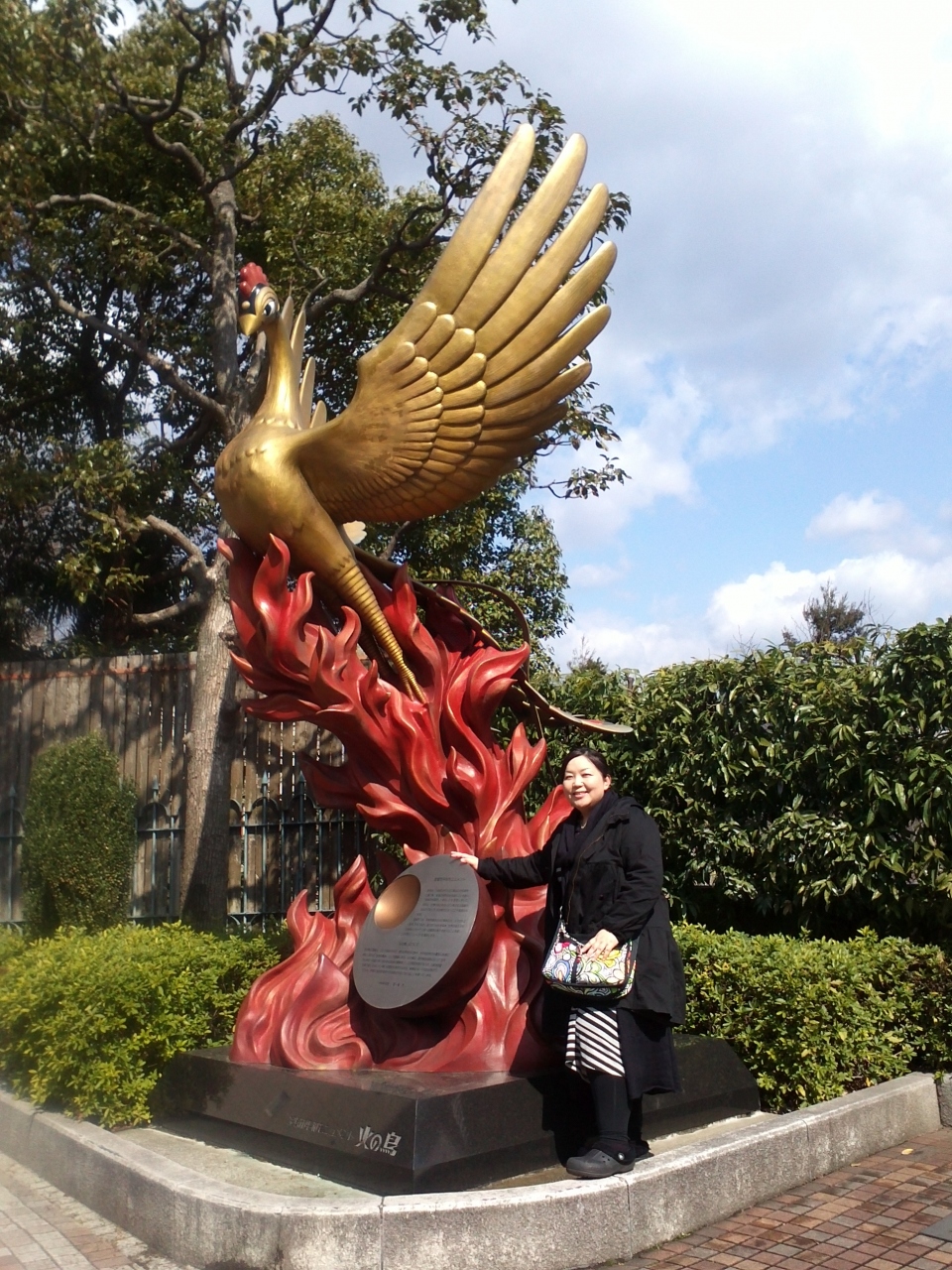 入り口前には、美しい火の鳥の像がお出迎え。