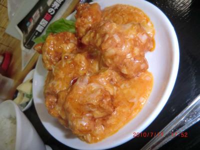 ダーリンはユーリンチー、ナヲミはチーズ入り鳥唐揚げのチリソースを頼んだのですが、でかい鳥唐揚げがゴロゴロと6~7個入ってます。