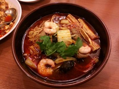 火鍋ラーメンは期待を裏切らない美味さ。ちゃんと本当の火鍋の味がします。ちゃんと薬膳の薬味でとったスープを使っているんでしょう。