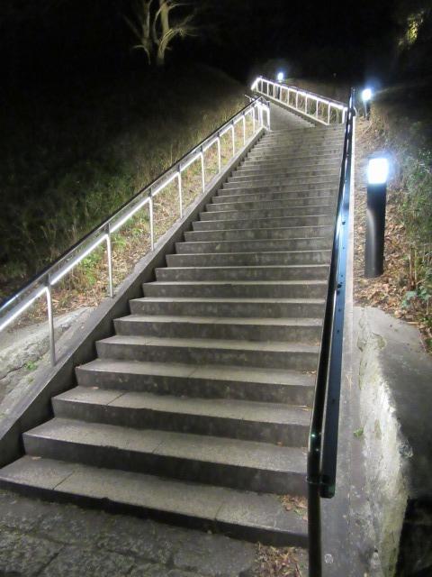 駐車場に車を置いて、そこから非常に段数の多い階段を