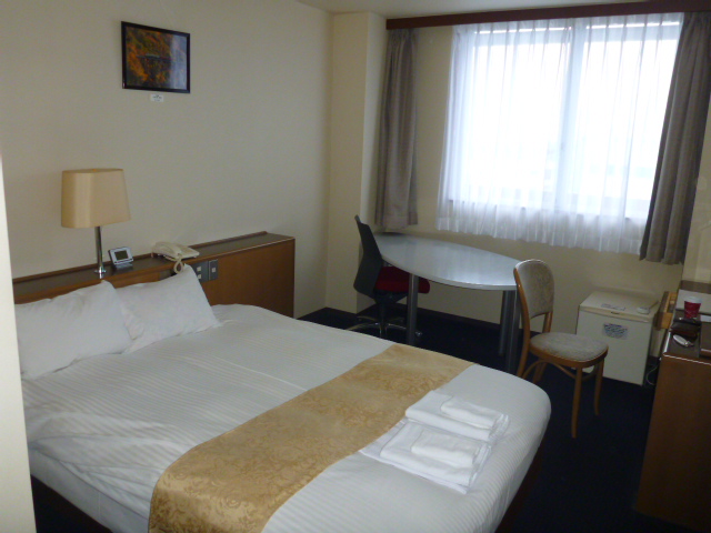 部屋は普通の広さで、冷蔵庫とシャワートイレ付き。