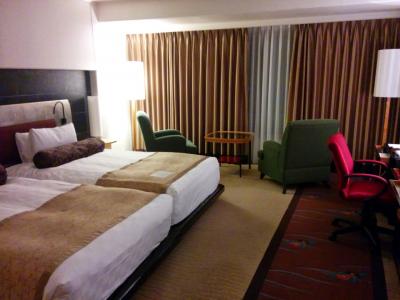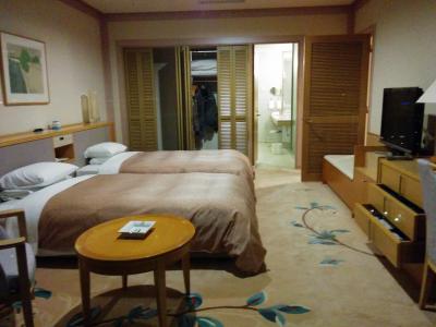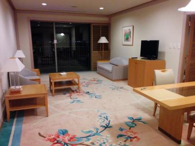 部屋は二部屋あって、リビングとベッドルームに分かれていました。どちらにもテレビがあり、とても広々としていて二人ではもったいないくらいでした。トイレも2カ所あったので良かったです。お風呂がすごく広く、ジャグジーになっており、又、シャワーベースも別々になっていました。大浴場があったので、部屋では朝にシャワーを浴びたくらいだったので、もったいなく思いました。
