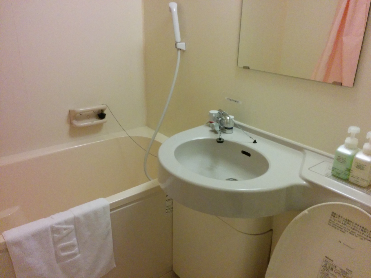 - 部屋にもユニットバスがありますが、大浴場もあります。