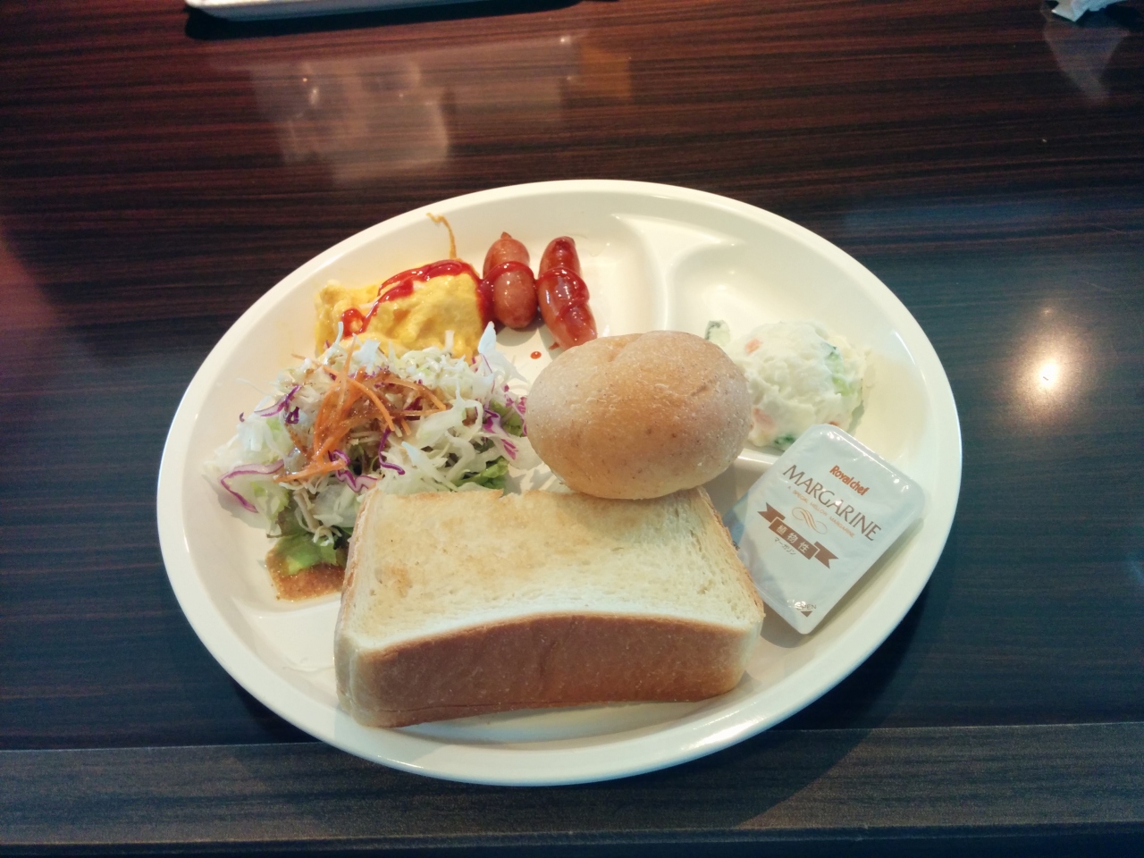 朝食は無料で簡単な洋食がいただけます。パン、ソフトドリンクはフリーです。
