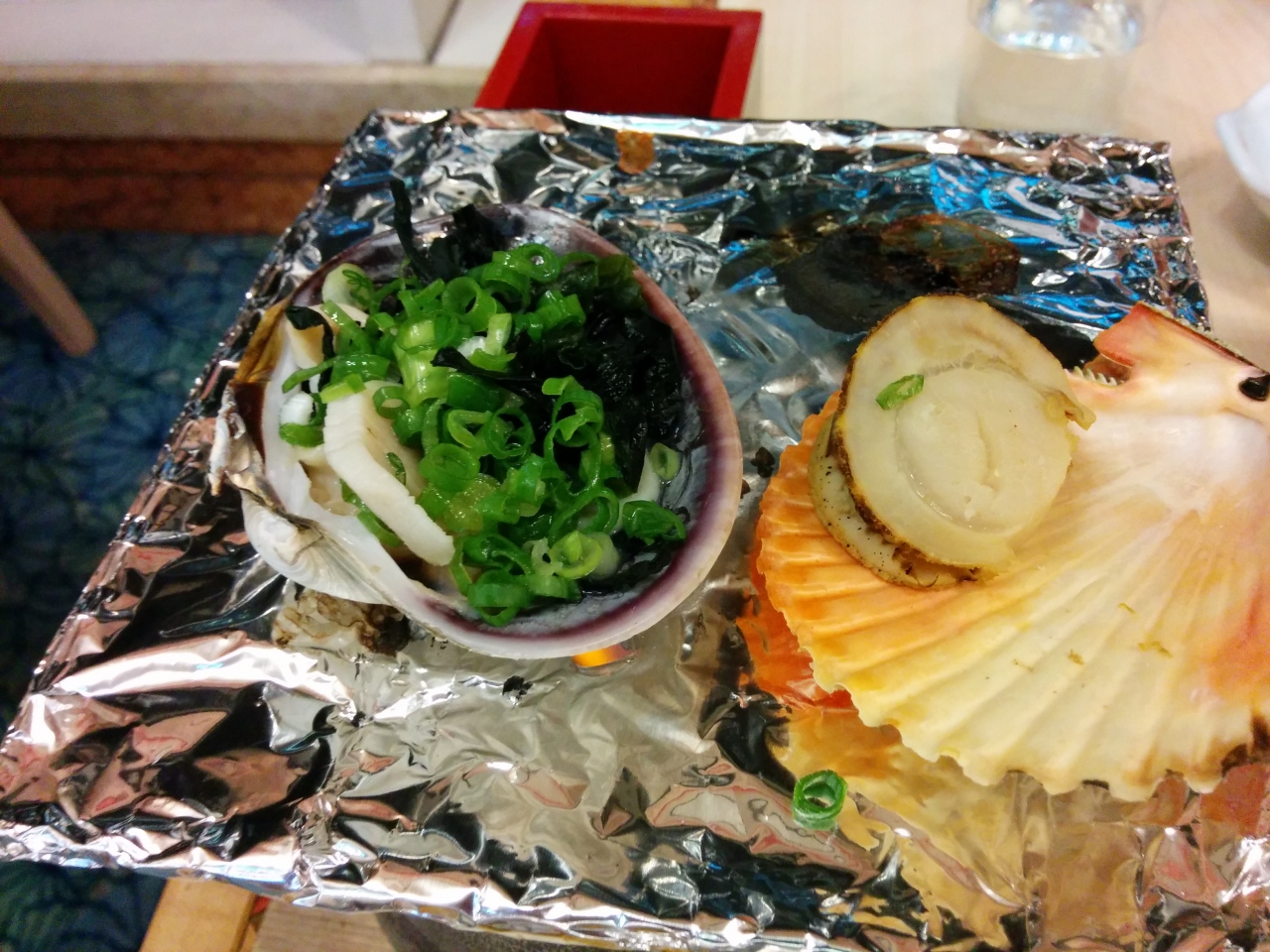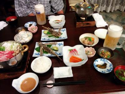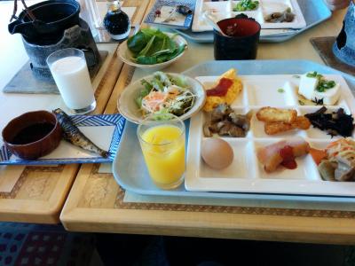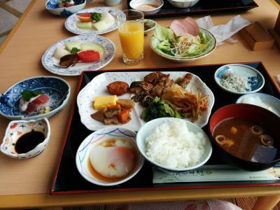 食事は夕朝食ともバイキングでした。テーブルで磯焼きが出来るので良かったです。お刺身も盛り合わせを作っていただきました。サーロインとヒレ肉のステーキもあり、地場産物のお野菜もあったりと、バラエティーにとんでいました。お寿司もあったのに、食べ終わって帰るときに気がつきました。それが残念でした~