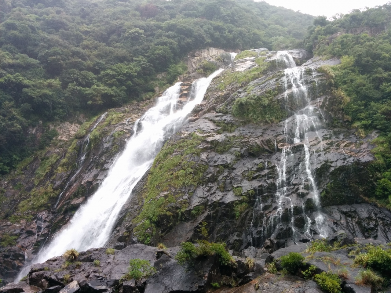 西部林道を通ってきて、抜けたところに大川の滝があります。空港の方から行けば、西部林道に入る直前のあたりにあります。