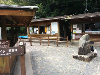 周回道路から山の方に入っていき、暫くすると千尋の滝の展望台入り口に着きます。