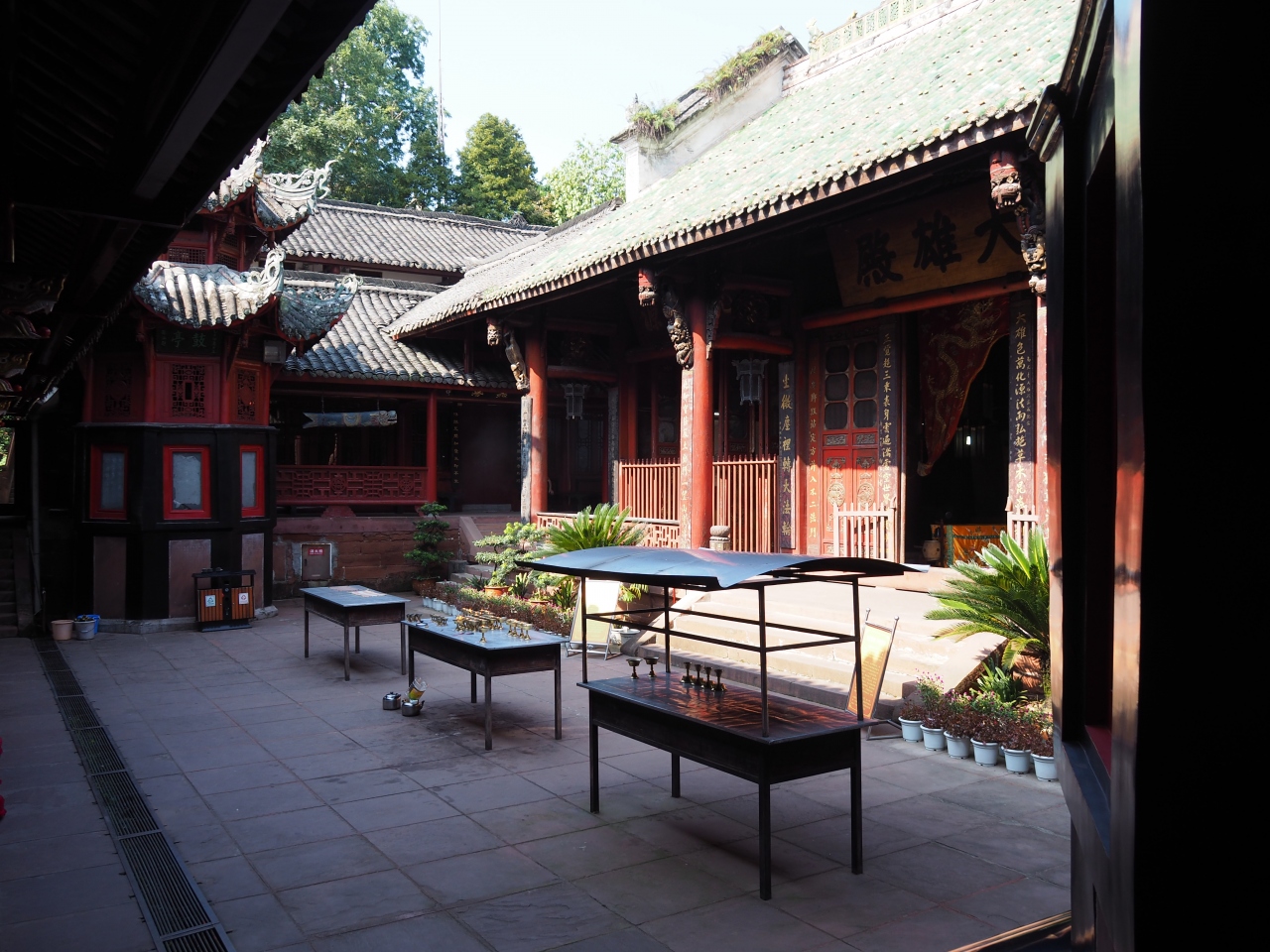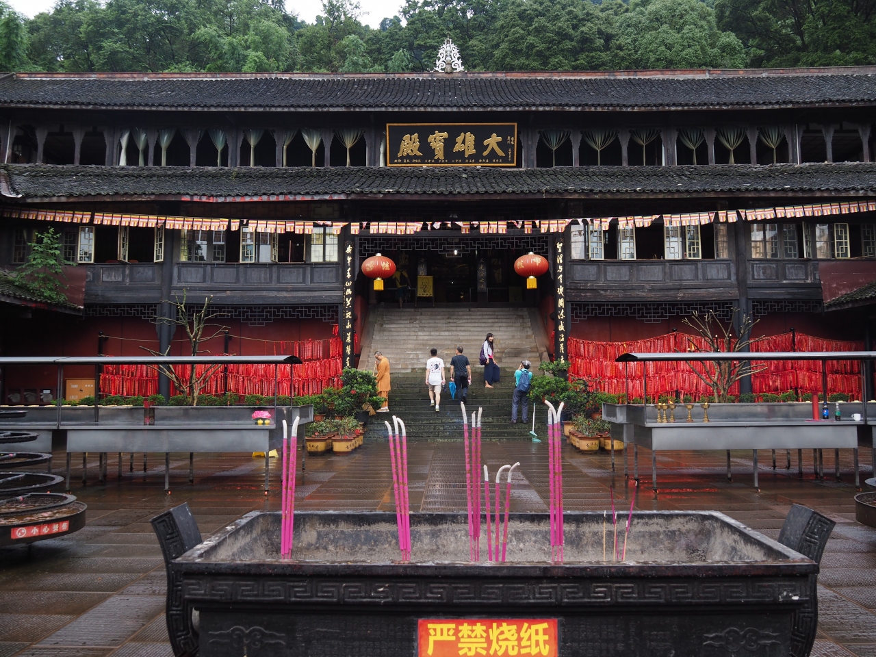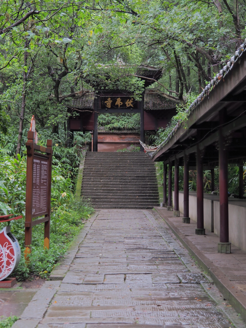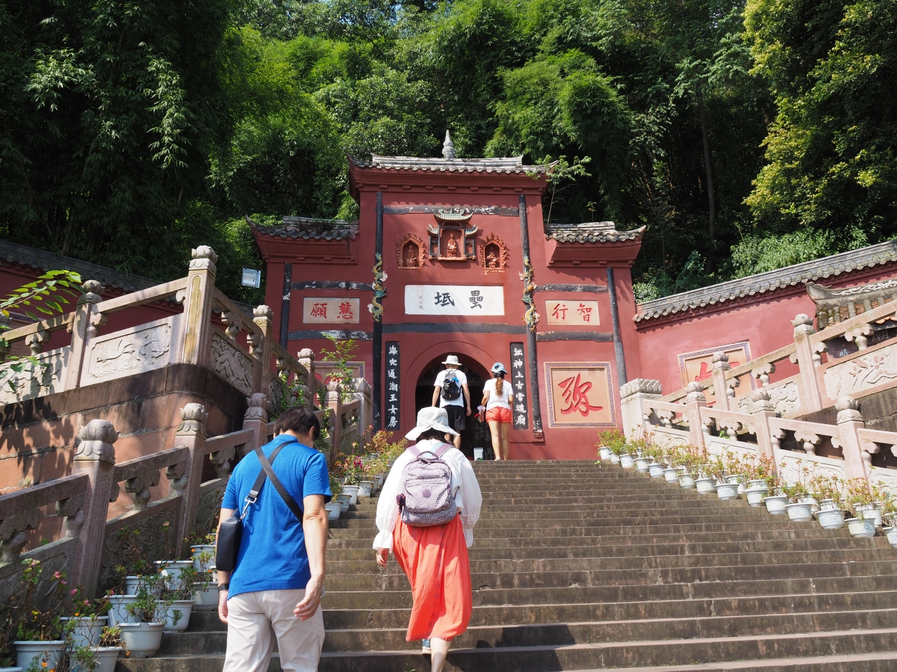 楽山大仏から足を伸ばせば、簡単に行くことができます。地図上では、楽山大仏からあまり距離がありませんが、大仏から南下する道はハイキングコース並みの健脚コースですので、烏尤寺入り口までは交通機関を利用することをお勧めします。また、バス停から結構歩きますので、大仏からタクシーで移動するとよいかもしれません。帰りはバス停まで歩くことになります。バス停は、お寺のある島の東入り口の橋のたもとにあります。帰りのバスには、さほど待つことなく乗れました。結構多くの便があるようです。