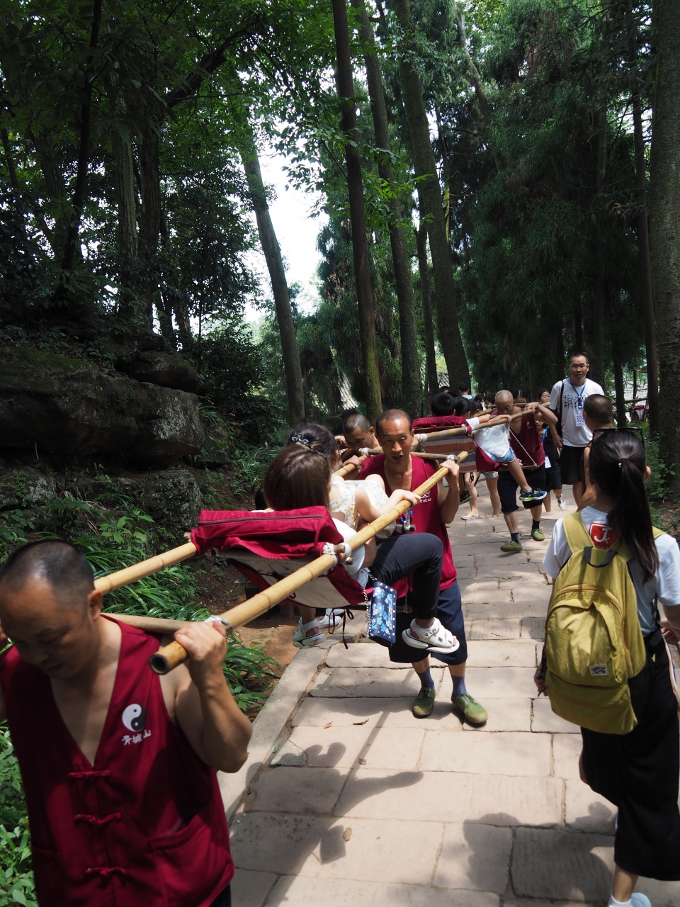 峨眉山旅游客运中心から報国寺経由で簡単に歩きていけますが、登り坂が続きますので、路線バスの利用をお勧めします。道路沿いにバス停があり、人数が集まったら出発しています。