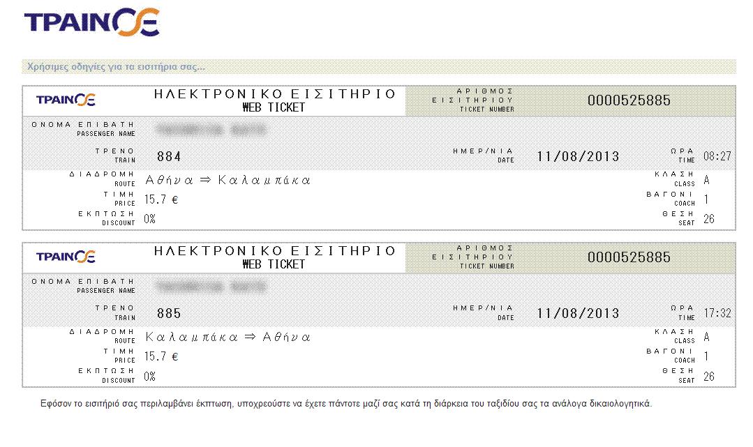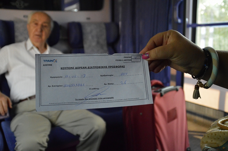 メテオラへアテネから日帰り旅行のため、ギリシャ国鉄を利用しました。インターネットで座席指定を含めて半年前に予約でき、1等車でも片道15.7ユーロと格安運賃です。