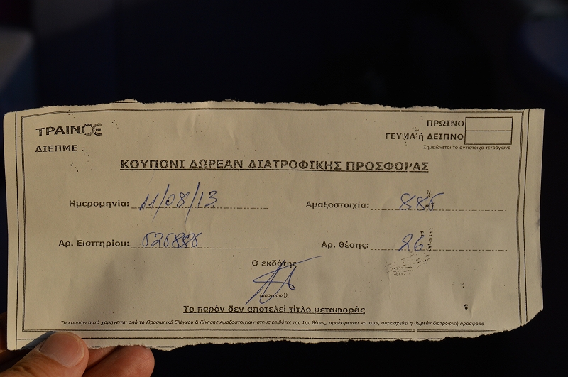 メテオラへの入り口カランバカ駅までアテネ中央駅から約350?。東京−名古屋間に相当する距離をこの料金しかも1等車で行けるとは驚きです。