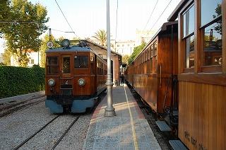 スペイン・マヨルカ島のソイエール鉄道は、木製の電車が客車を引くクラシックな鉄道です。パルマの始発駅はスペイン広場の"Estació Intermodal"(地下駅)の西北に隣接しています。運行本数が少ないので注意してください(http://www.trendesoller.com/en/cms.php/Timetable_and_Prices)(片道10ユーロ/往復17ユーロ)。また、終点ソイエール駅前から同鉄道の路面電車でソイエール港まで行くことができます(片道4ユーロ)。この路面電車はソイエール鉄道同様、電車が客車(オープン車両)を引いて走ります。