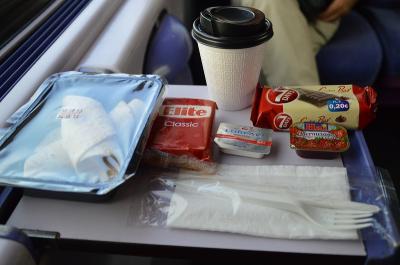同室の地元の方が、軽食が出るからブッフェで受け取りに行くと教えてくれ、事前に指定席を取っておいた?客には車掌が検札の際、食事券を渡してくれました。朝は朝食、帰りは軽食でした。ホテルで朝食をとって出発したため、朝食をカランバカ到着前の昼食にしましたが十分な量があり、帰りの軽食も夕食としてちょうどよい量でした。- 旅行時期
