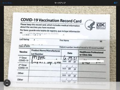 CDC発行のワクチン証明。私はファイザー製を打ちました。2回目は国内で...
