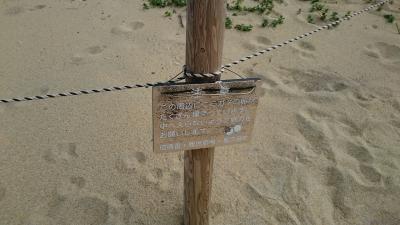 「この周辺にウミガメの卵がたくさん埋まっています。中へ入らないように協力をお願いします。