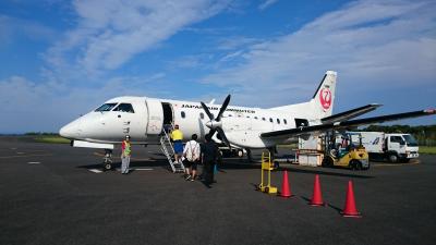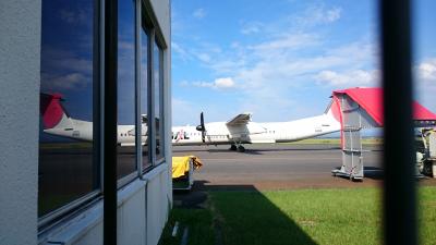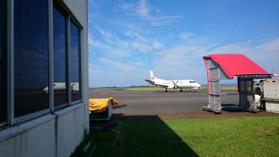 鹿児島の離島の空港に多い、飛行機のタラップを降りて歩いて空港の建物に入ります。