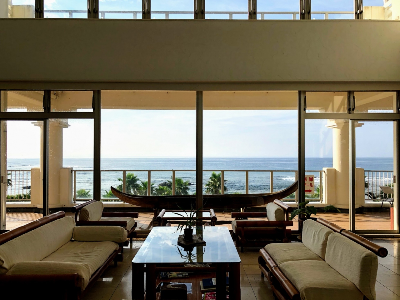 奄美大島・加計呂麻島・喜界島を周遊するのに2泊しました。あいにくのお天気でしたが一瞬晴れたタイミングが朝食の時間と重なったので朝食会場からキレイな海が見えました。また、開放的なロビーからの景色も素敵でした。