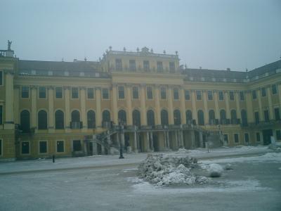 朝靄のシェーンブルン宮殿。この日は気温−8℃でした。この1週間ほど前は...