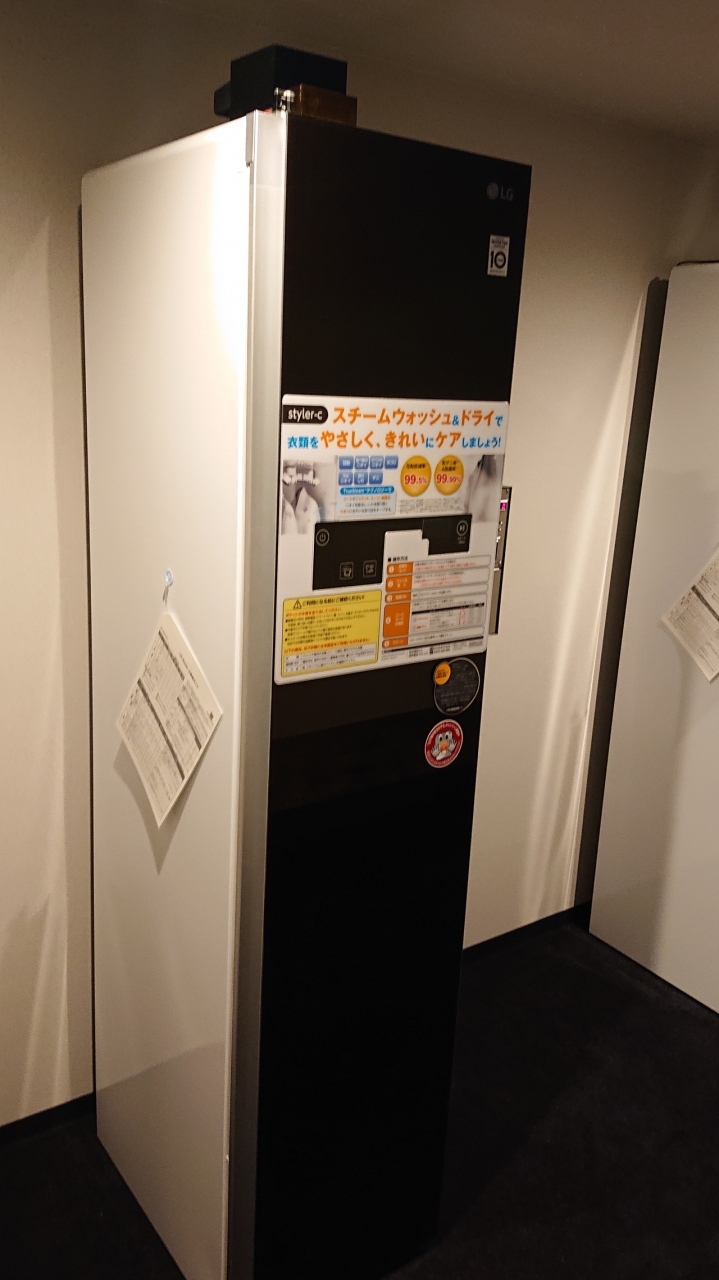 部屋は黒を基調としたシンプルながらおしゃれな造りでした。大浴場はもちろん、ビジネス用の部屋やLG styler(家庭用クリーニング機) がありました。