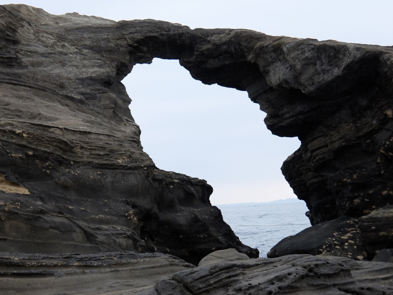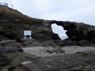 悪天候でこの穴を通して青い海を見ることは叶いませんでした。