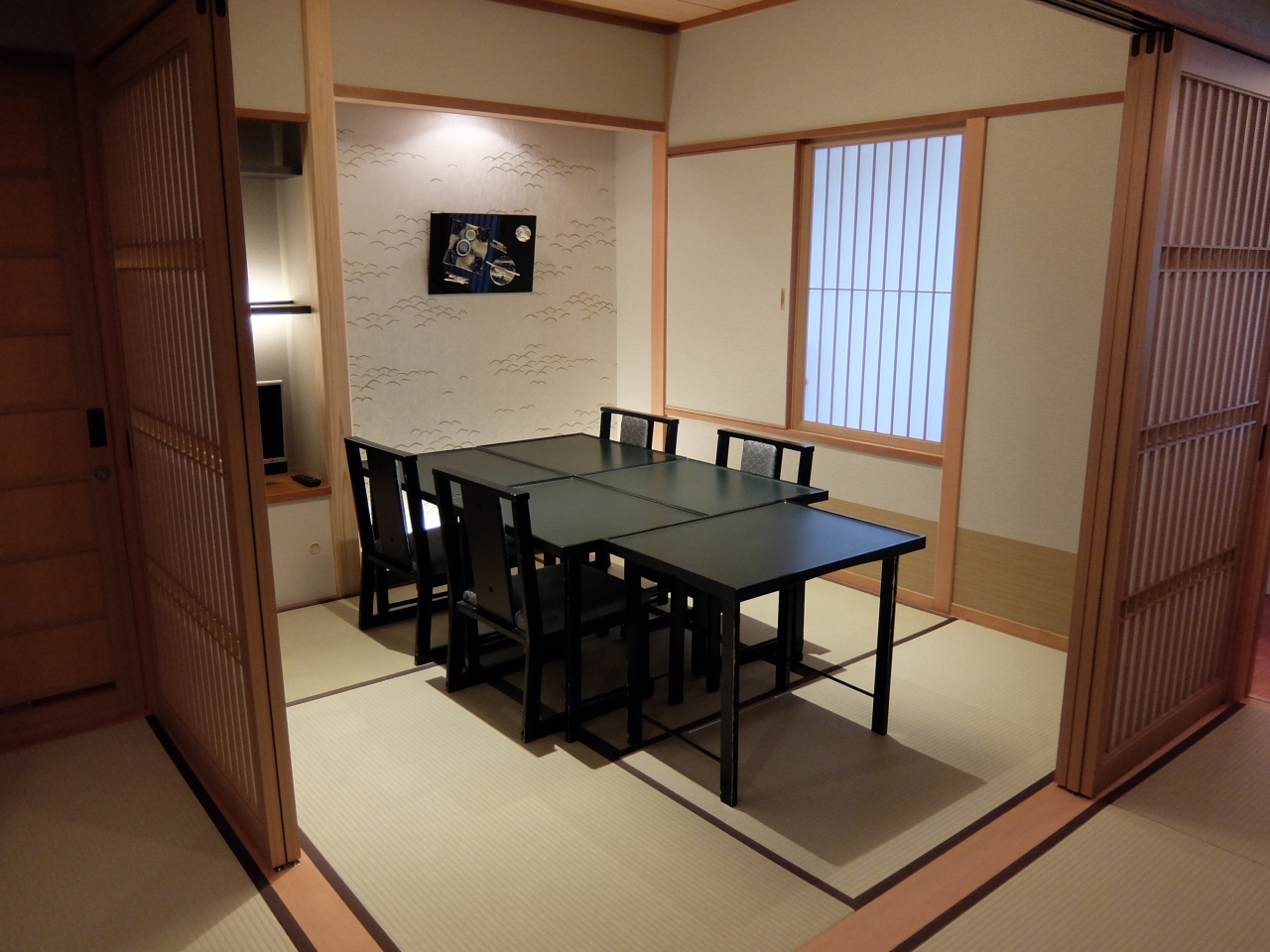 夕食後には、ロビーでワインを片手に音楽を聴くサービスタイムもあり、朝食後にはお抹茶をたててもらいました。