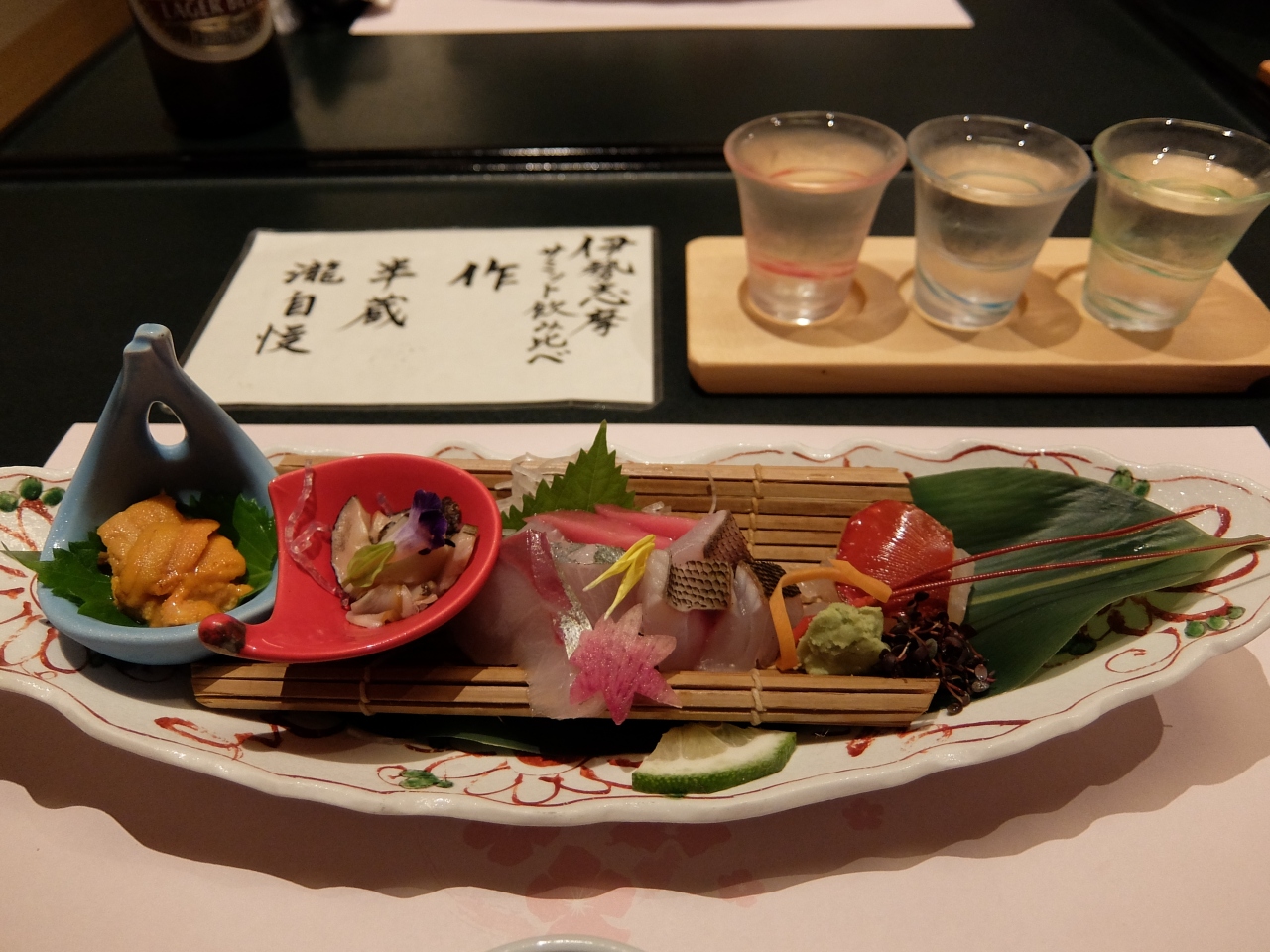 食事は次の間でとることが出来、海の幸を中心とした献立に満足しました。
