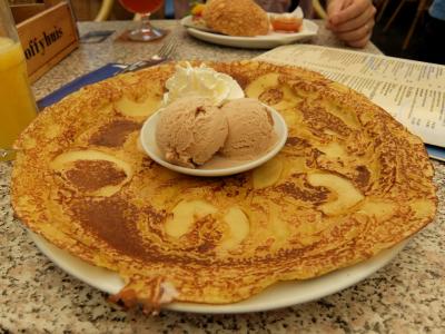 スライスしたリンゴがのった、シナモン風味の生地にアイスクリームと生クリームのトッピング…お皿いっぱいの大きさで、大満足でした。- 旅行時期