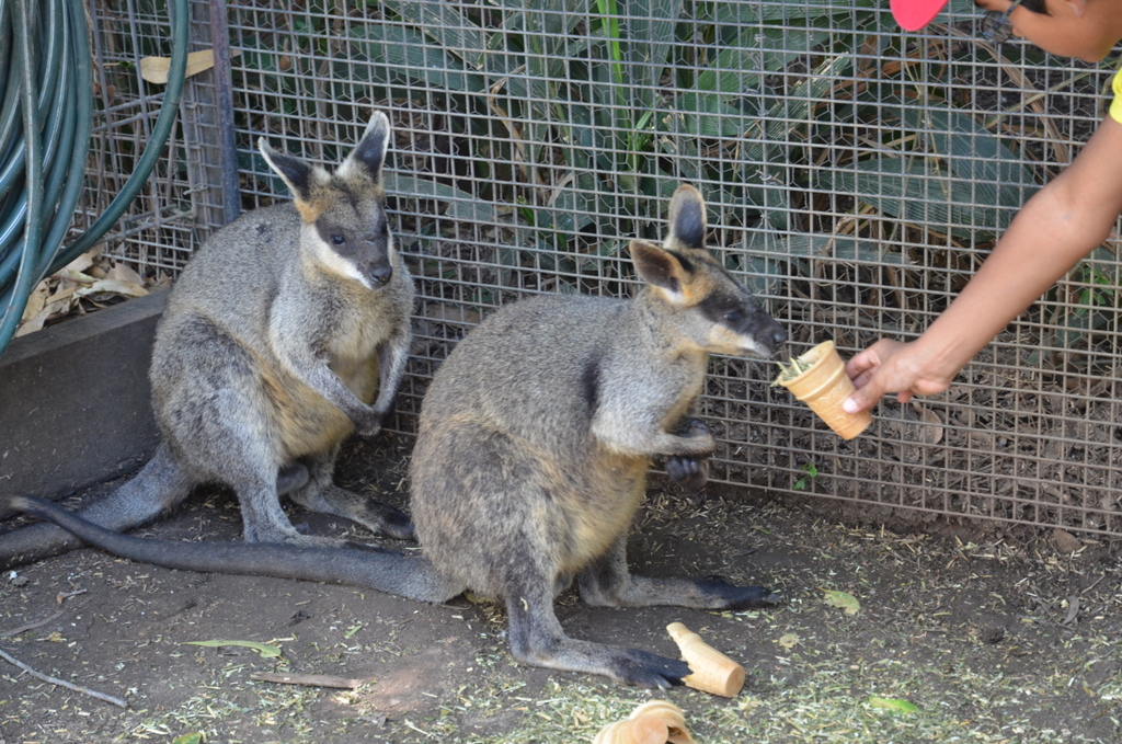 コーンカップでワラビーや、カンガルー、エミューにエサをあげることもできました。