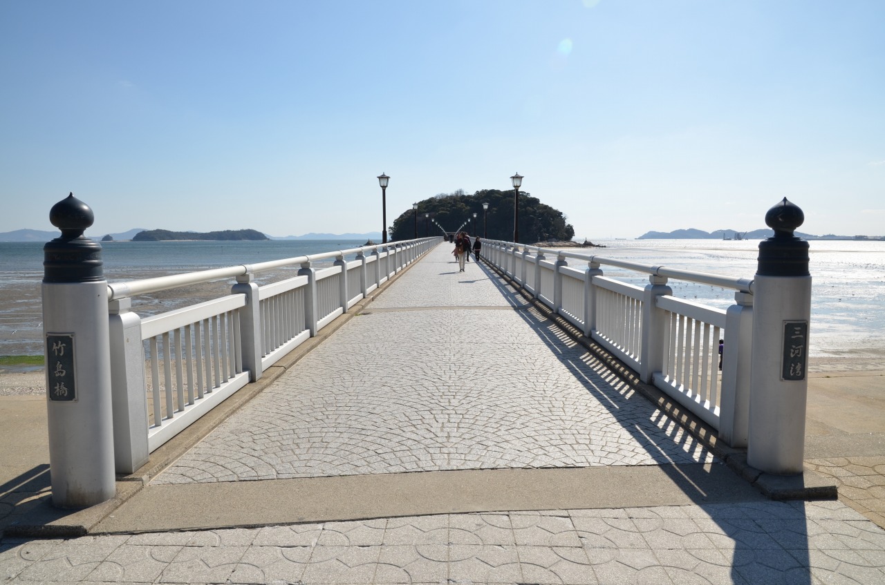(竹島橋は縁結びの橋と呼ばれているので、相手と中央を開けないよう、気をつけて渡ってください。夫婦・カップルで訪れた際には、ぜひ仲良く手をつないで歩いてみてはいかがでしょうか。)