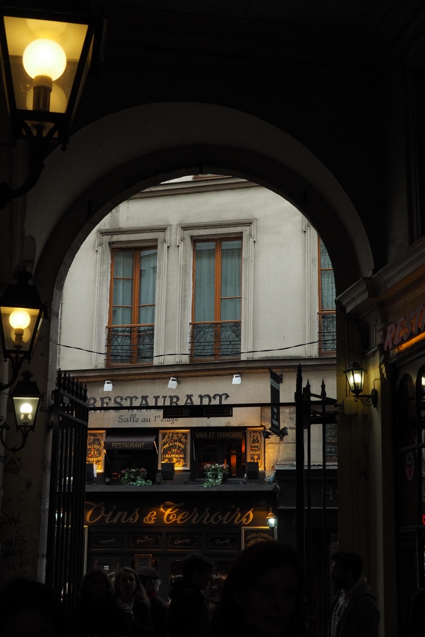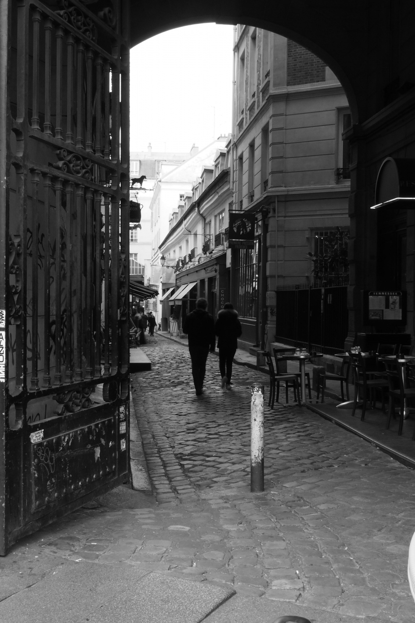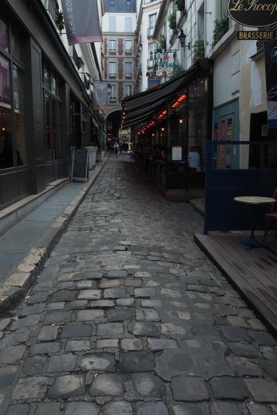 サンジェルマン界隈を散策中、偶然通りかかりました。大通りの喧噪が嘘のような、時の流れが止まったかのような雰囲気の路地です。石畳の道が何世紀もの間にすっかり磨かれ玉のように光っていて、何とも言えない味わいがありました。写真撮影の際にはモノクロやセピアでも撮ってみると、タイムスリップしたかのような印象に仕上がり、良い記念になると思います。