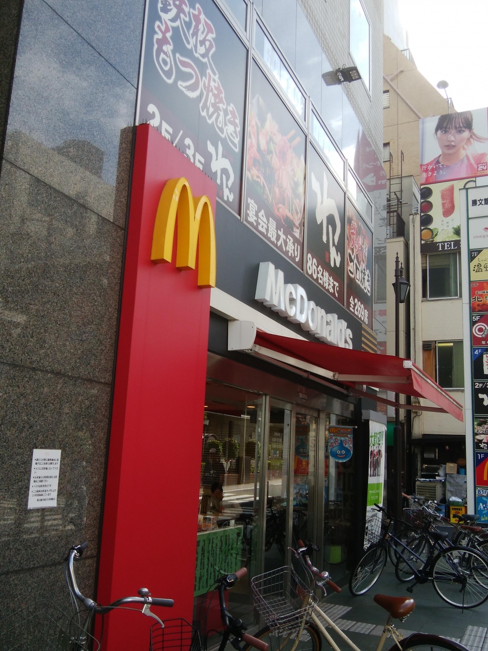 八月のお盆休み、三田界隈を散策、マクドナルド三田駅前店でコーヒーで一休み。この辺りはコーヒーショップチェーンが多数あるが、マックのコーヒーは安価であってもよい味と香りが出ており、店内でゆっくりとすることが出来た。