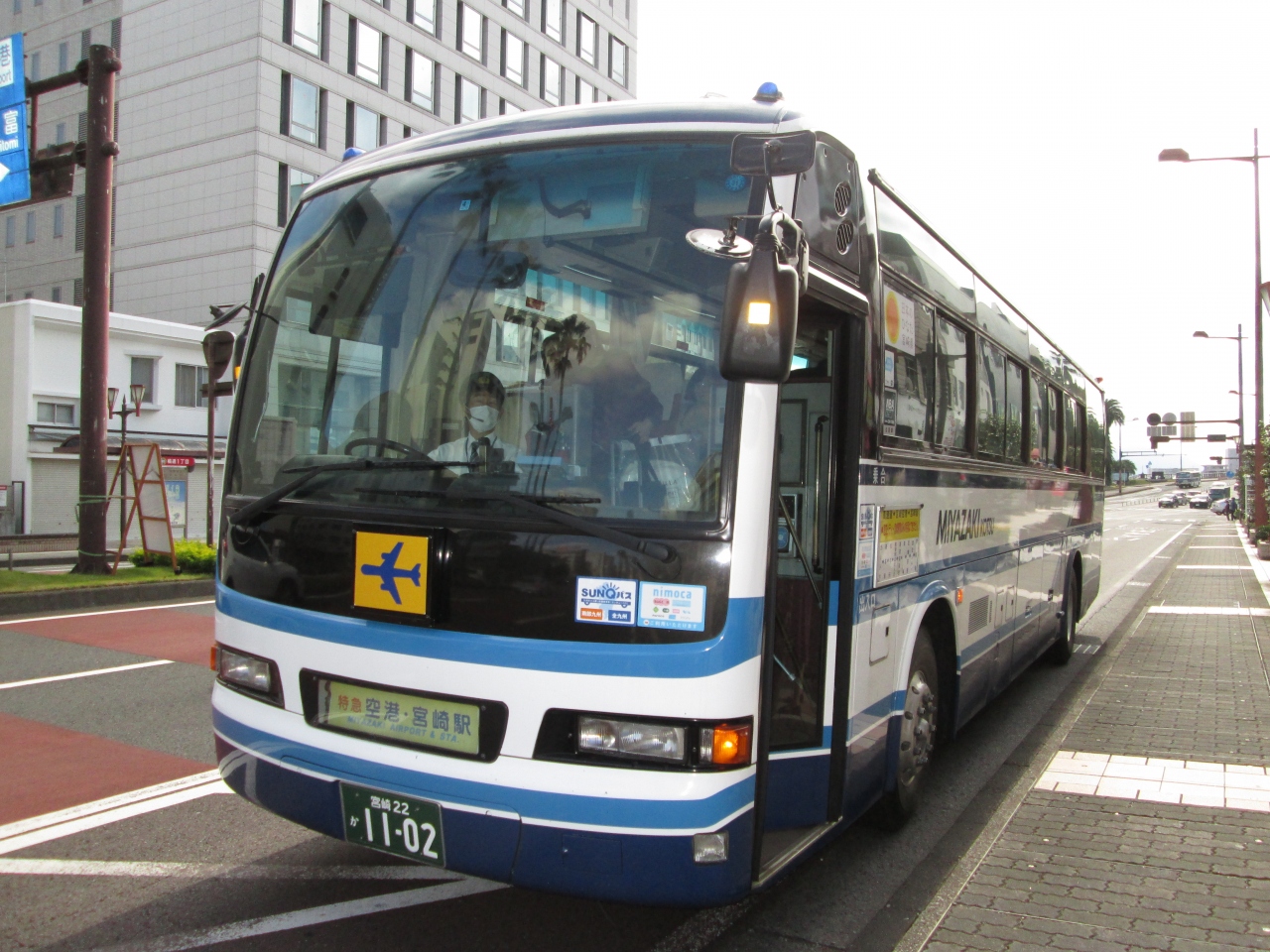 羽田空港からANA国内線で快適な空の旅を楽しみ、定刻に宮崎空港に到着。バスまで時間があったため、2階出発ロビーのお土産店巡りをしました。チーズデザートやおび天の実演などもあり、デパ地下のように品揃えは豊富、あっという間に時間が過ぎました。宮崎は空港と市内の距離が近く、コインロッカーは200円と格安で、市内観光の拠点として賑わっていました。