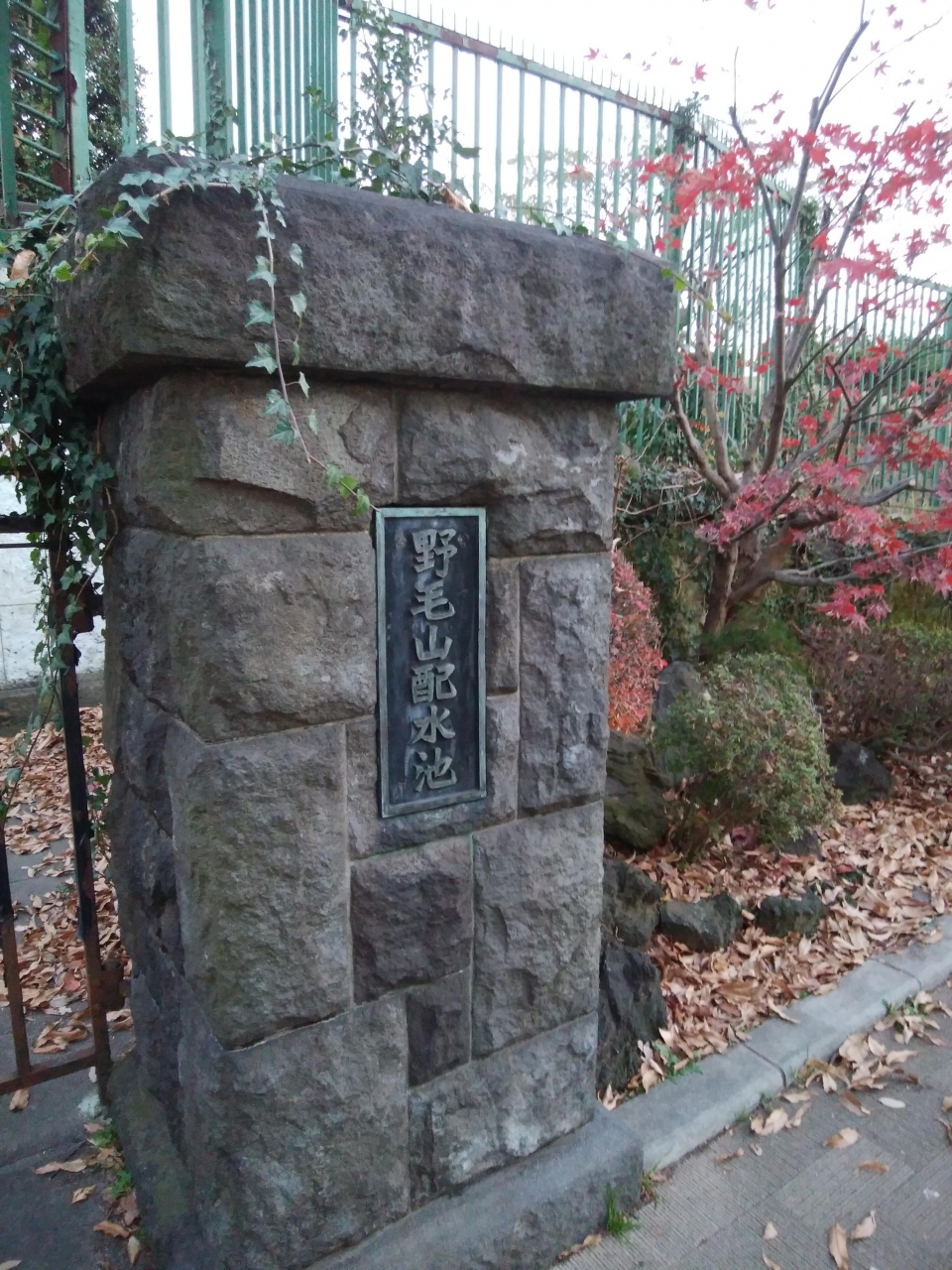 12月でもまだまだ紅葉が楽しめる横浜の野毛山公園は、道志川から40㎞の道のりを経て運ばれる水道管の終着点でもある。寒さも厳しくなり訪れる人はまばらであったが、今の横浜を形成しているのはこの配水池の完成が起源であり、大切にすべきと思った。
