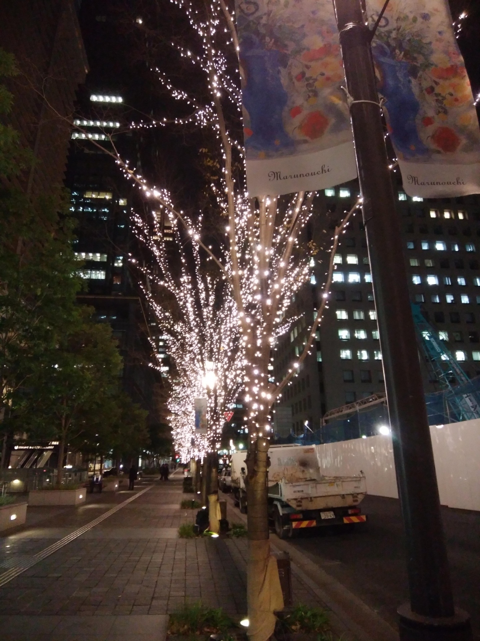 地下鉄東西線大手町駅から東京駅まで丸の内仲通りを冬の風物詩であるイルミを見ながら散歩。クリスマス前のひときわ寒い日であったが、街路樹には上品な電飾が施され、街を照らす華やかな光景は家路へ向かう心を温めた。
