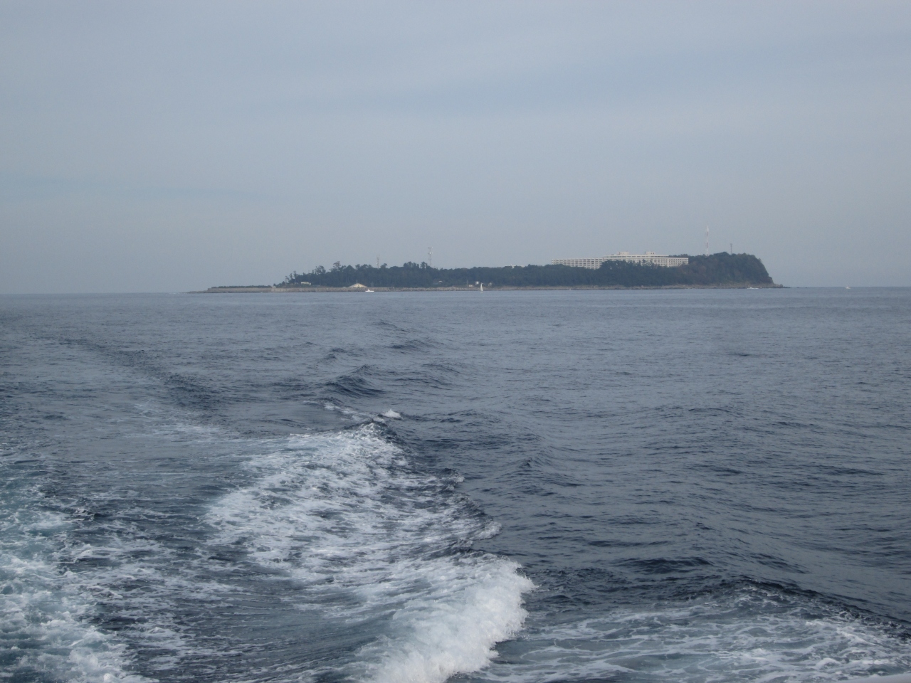 熱海沖の離島であるが、縄文時代からの居住があり41戸が漁業を中心として生活、電話はNTT西日本の海底ケーブルで結ばれ、電気水道も伊豆半島からの海底線で送られておりインフラは整っているようである。熱海からの富士急行定期船で30分、あいにく荒天であったため船は揺れ、かもめの鳴き声に迎えられながら素朴な漁村の港に着岸した。漁協スーパーなどで買い物などの休憩後、ゴージャスなグランドエクシブに着くころには天気が回復、よく整備された庭園や、初島灯台を眺め、南国風の樹木の間を散策、伊豆半島が一望できる露天風呂に入り、リゾートアイランドを楽しんだ。翌日は富士山を眺めた後、食堂街から海沿いに初島を一周し、つかの間の晩秋の休日を満喫。帰りは伊東への定期船に揺られ、紅く染まった伊豆半島の山々を目にしながら港に接岸、素朴な干物屋でお土産を購入、大きな満足をしながら普通電車で帰路についた。