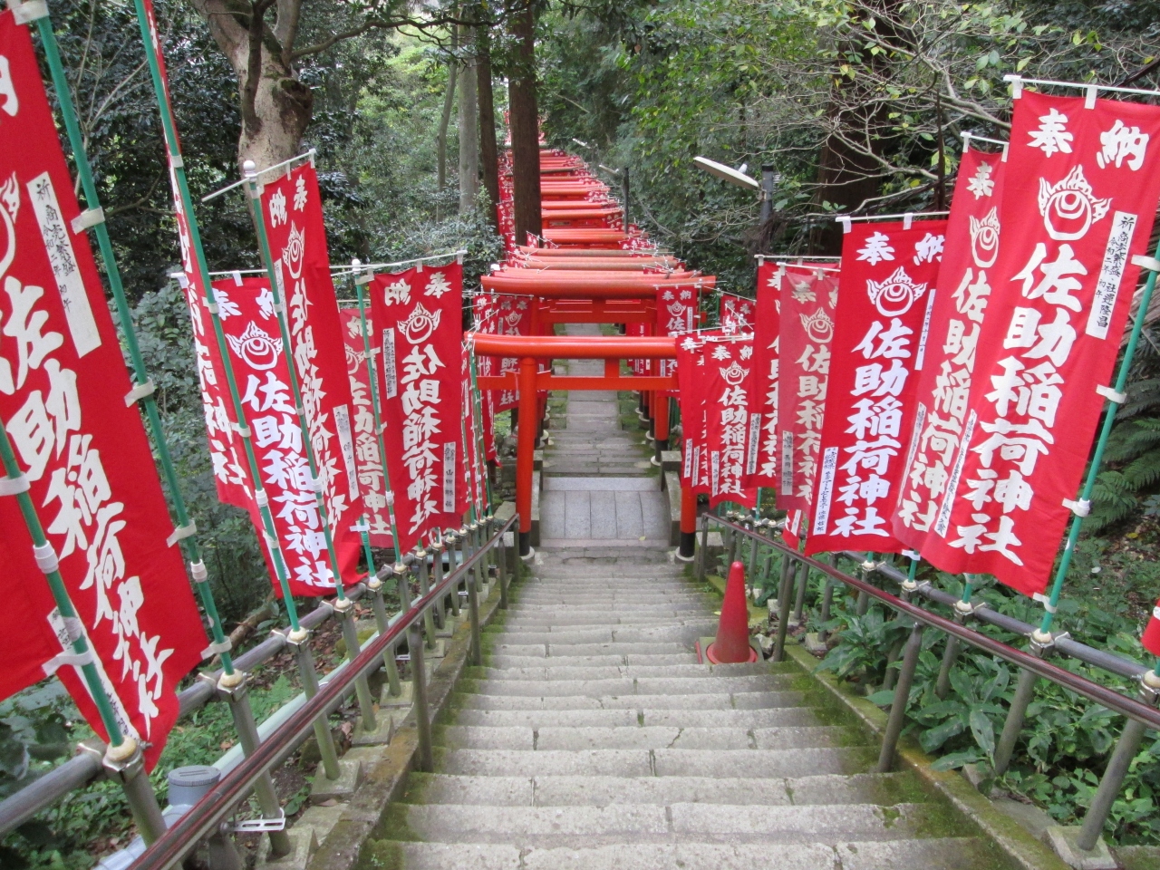 源氏山公園から坂を下り宇賀福神社を訪れました。洞窟にある清水で硬貨を洗うと効果があるという著名なところですが、休日とあって大勢の人がザルを持って並んでいました。参拝後、茶屋の先に坂道に折れ、佐助への近道を進みました。