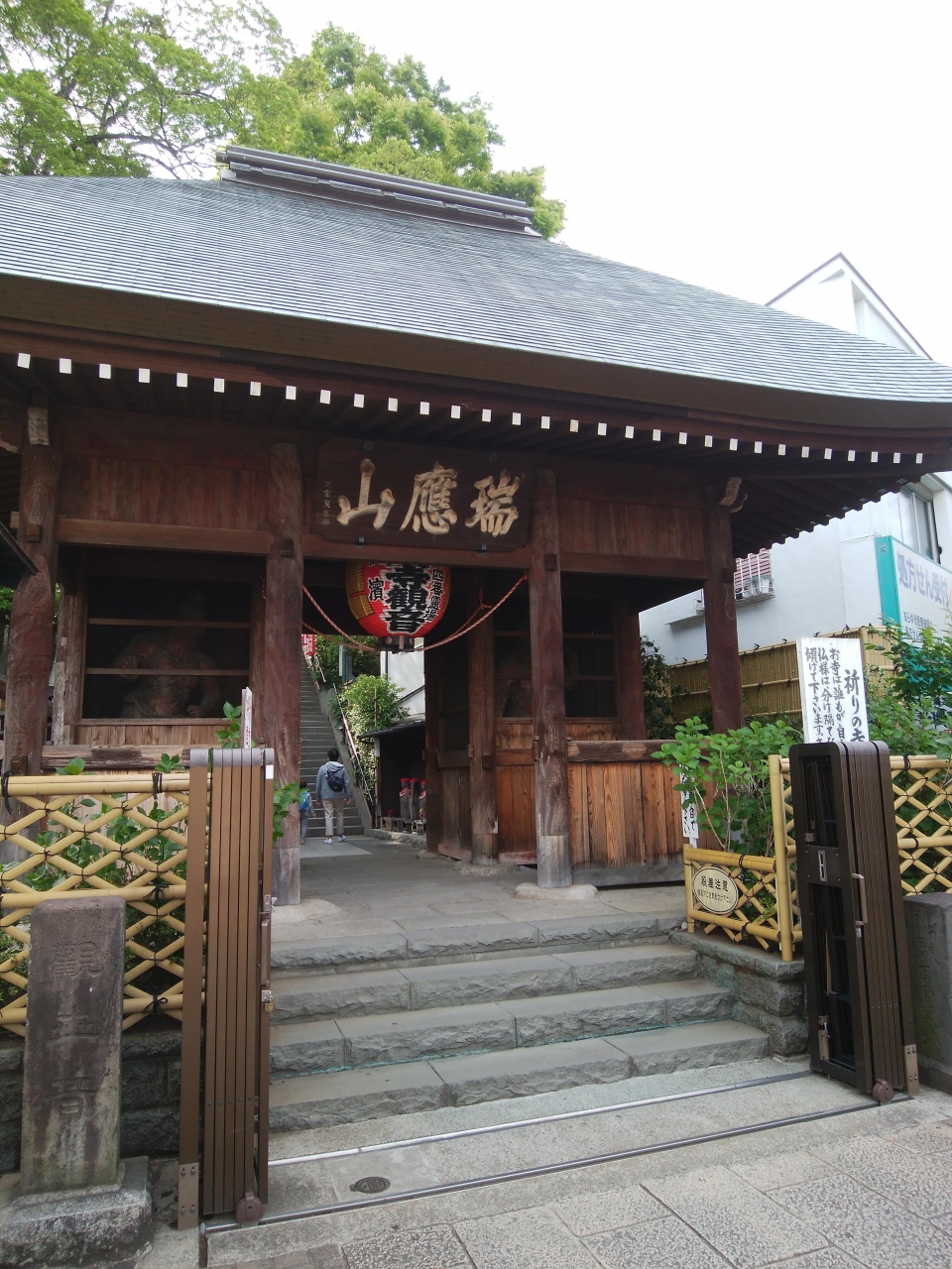 京浜急行電鉄の南太田駅を下車、山門を抜け、高架下を進み階段を上がると森の中に「西中山常勝寺」があり、ここで参拝をした。階段は急であったが、上がったところからは横浜市街を臨み、すぐ下を走る京急の電車がよく見えた。