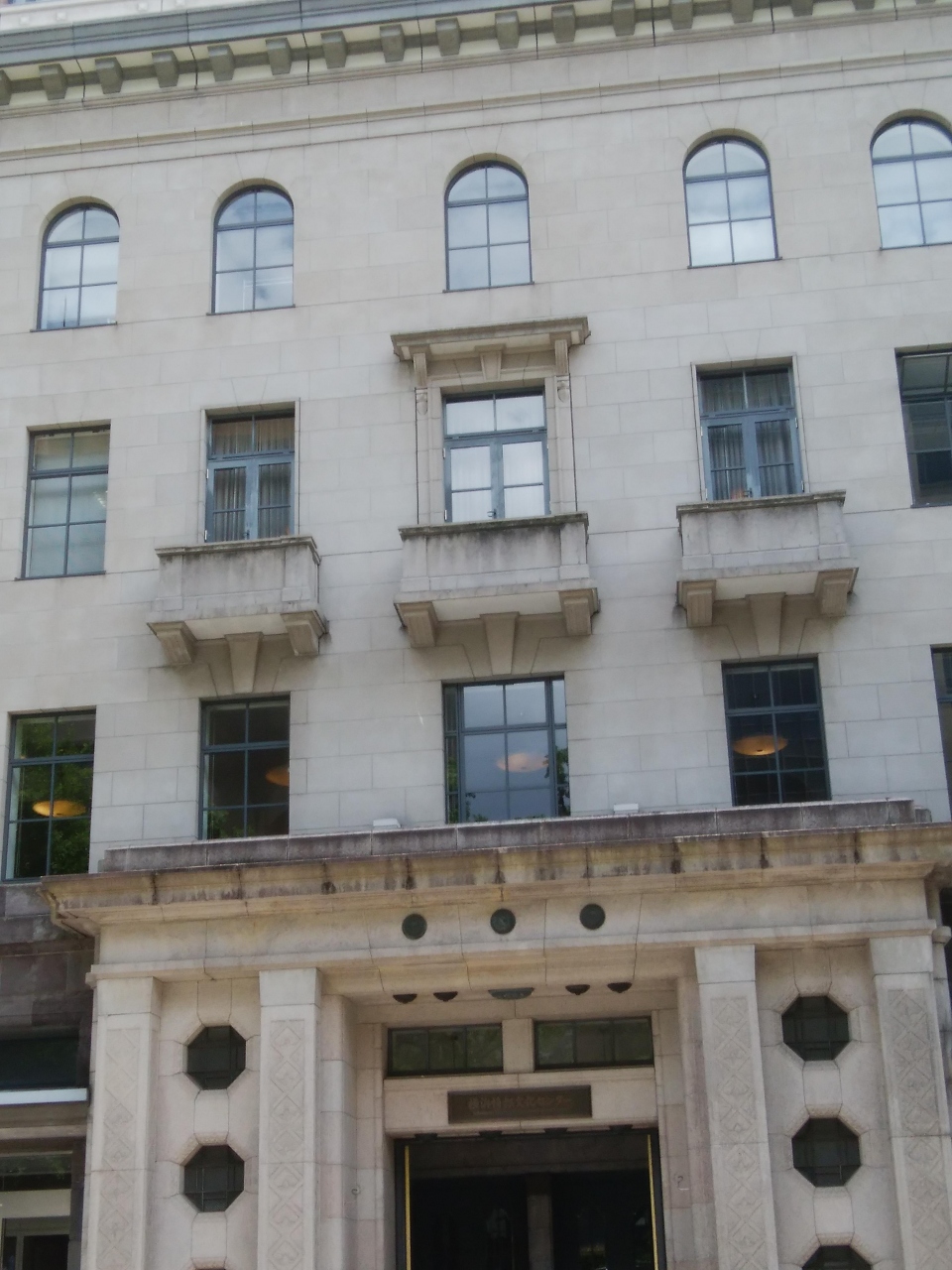 関内駅から日本大通りを散策、右手に見えた横浜情報文化センターに行きました。建物は旧市外電話局と旧商工奨励館とともにオフィスビルが構成されていますが、旧奨励館だった部分は、花崗岩で出来た歴史的建造物であり、一見の価値ありでした。