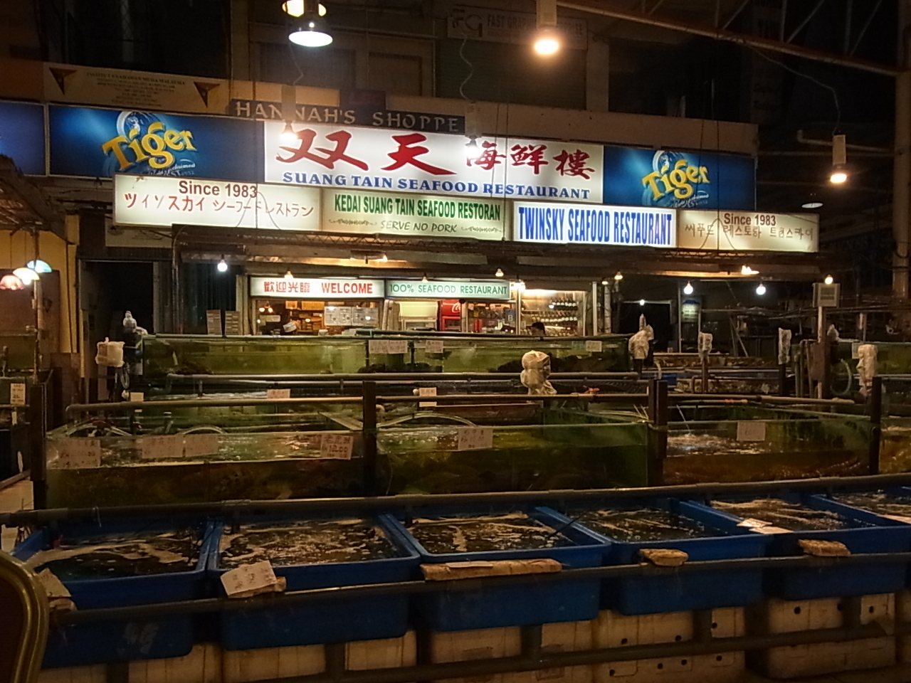 無数の水槽には、アラやロブスター、カキなどの美味そうなやつから、カブトガニや
