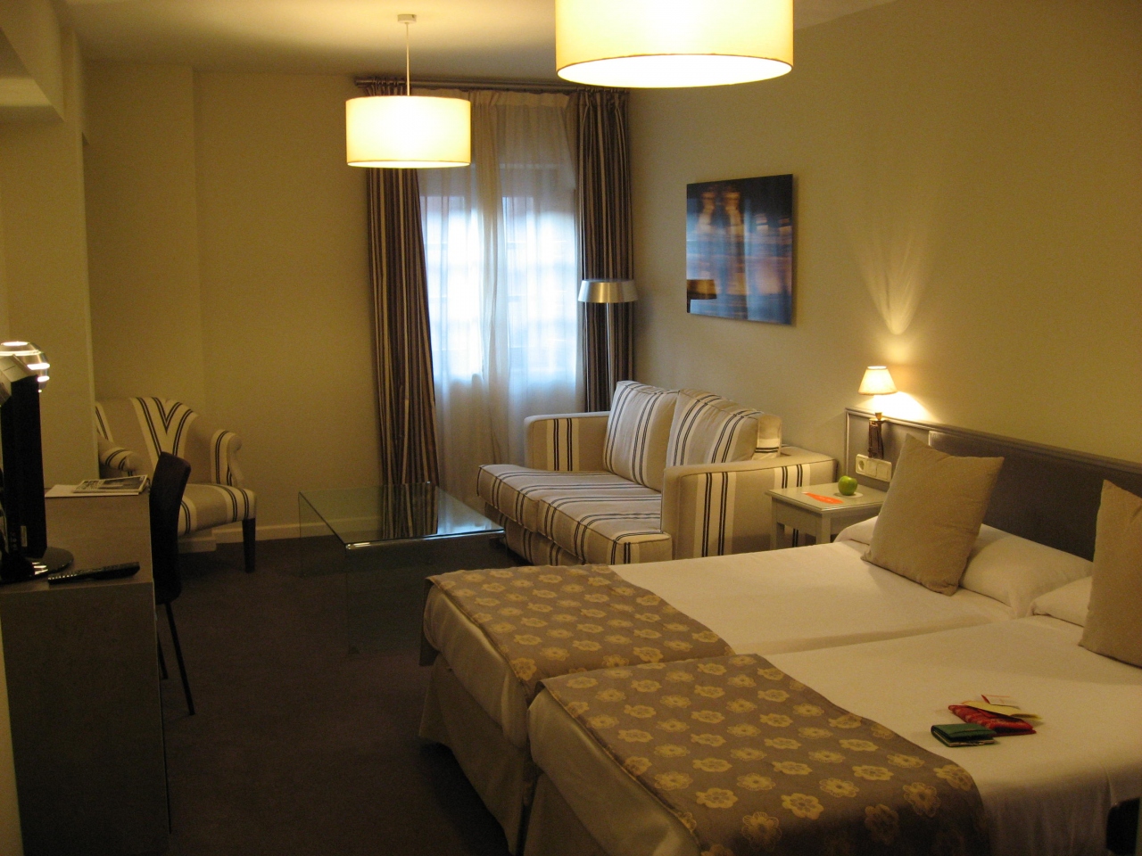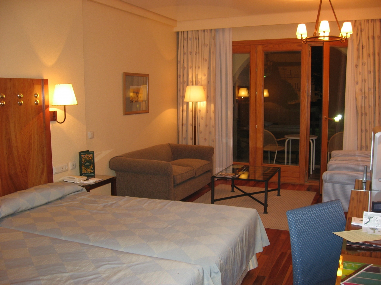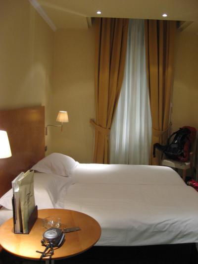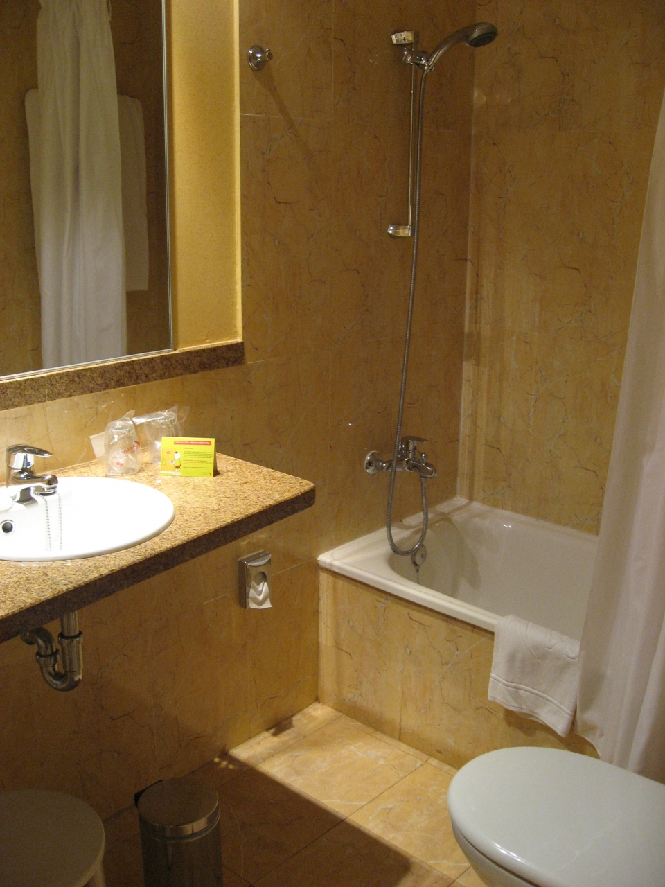 ビデあり(しかも蓋付き、笑)、洗面台2つ、アメニティー豊富、バスローブもあり、ドライヤーあり、コーヒーやティーバック類、小さなクッキー等もあり、湯沸かしポットもあり(これは今回のスペイン旅行でここだけでした)、金庫あり、広いテラスもあり、冷蔵庫あり。