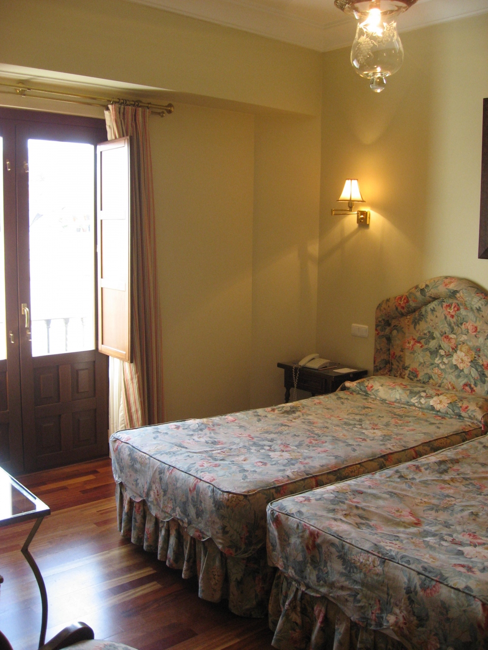一階の部屋で庭付き。ホテルはヌエボ橋に面しているが、部屋からは庭があって部屋が奥まっており見えない。