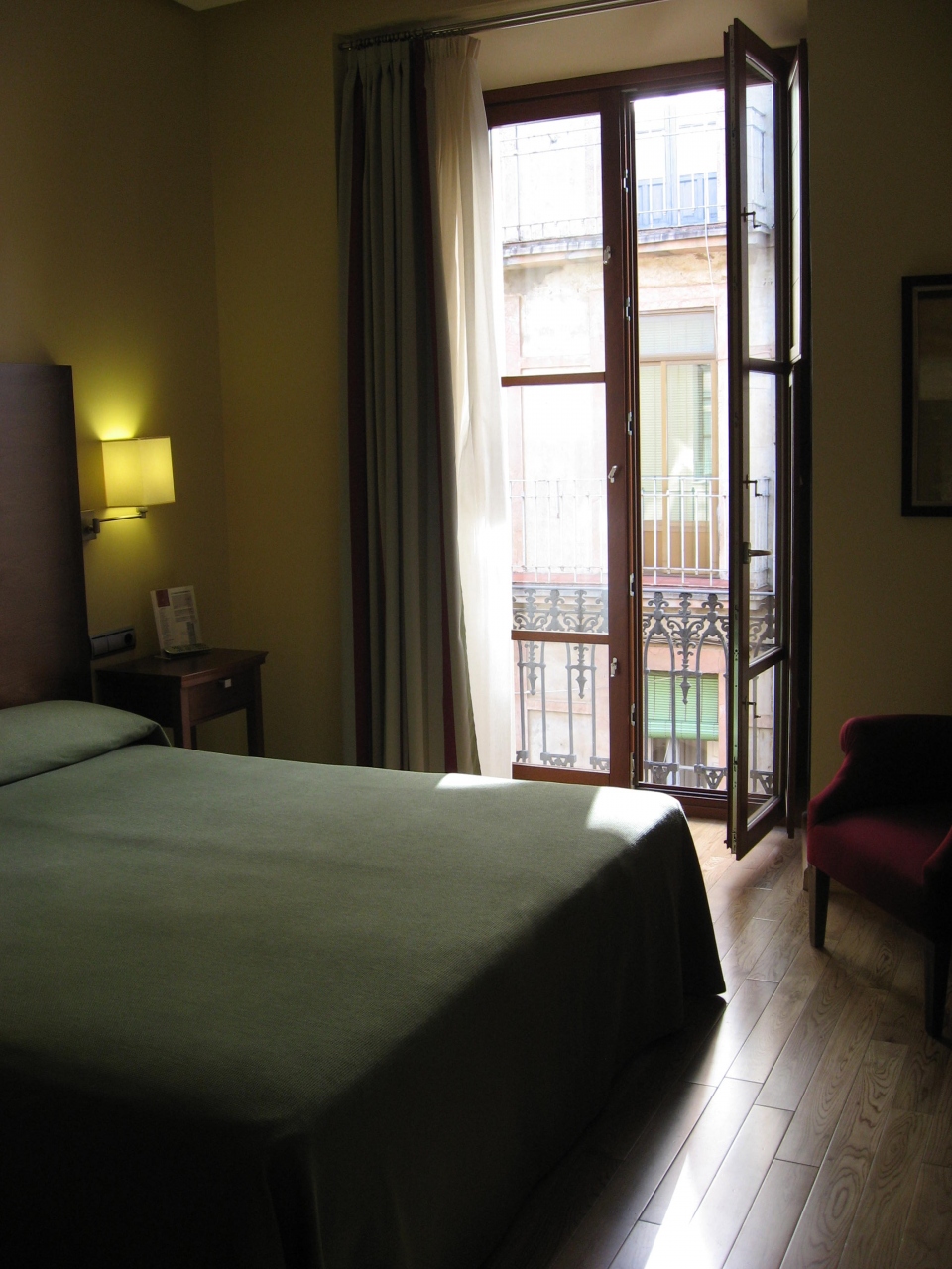 小さいがテラスもついており、外に出てRambla通りを行きかう人々、出店等を見て楽しむことができる。