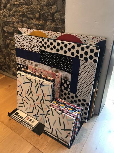 2階には、カーテンなどの大きな物がありました。生地パターンが置いてある...