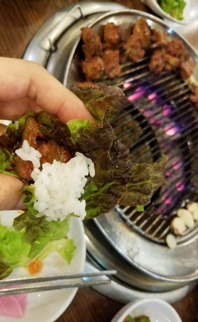 テジカルビはそのままでも美味しいけど、味が濃いめなのでサンチュにごはん...
