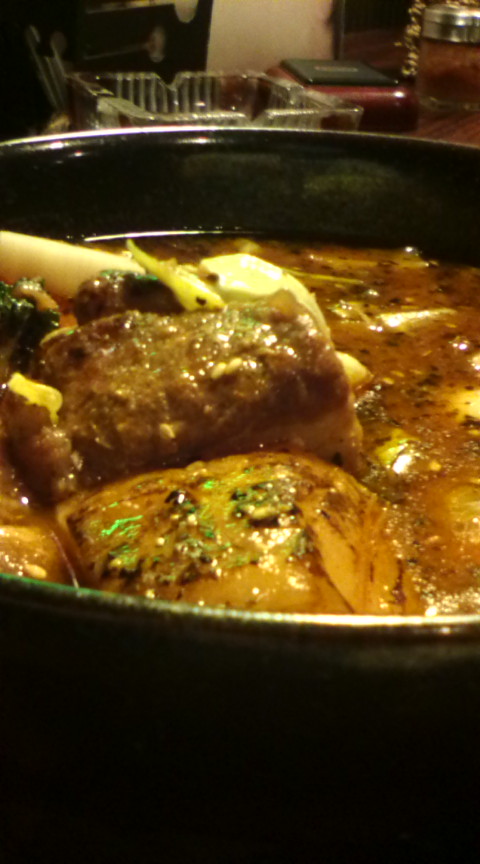 行列のできる店ということで、初スープカレーを食べに行きました。お店は2階です。お店のスペースは狭く、一人だったのでカウンターに通されました。メニューには辛さの表示がしてありました。チーズなどトッピングを考えるのも楽しかったです。個人的には、スープの程よい辛みと炙った野菜の甘みがいい感じに思いました!