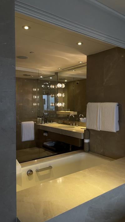大手町のオフィス街ど真ん中(というよりオフィスビル真上?)にある、アマン東京。バスタブのラグジュアリー感はさすがでしたし、ちょっとしたお菓子やフルーツなどのセレクトもセンスが良く、気が利いていました。ただ、客室のデザイン性など箱はいいのに、人がいまいちというか、ホスピタリティーがあまり感じられず残念でした。東南アジアの他のアマンの方が、同価格帯で非日常感をより味わえると思います。