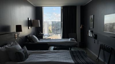 ストックホルム中央駅からすぐの立地で、部屋もなかなか広く、施設内にはバーやサウナもあります。屋上からの眺めが特に素晴らしく、夕焼けがとても綺麗でした。一方で、エントランスが最初全く分からず苦労しました…また、朝食ビュッフェはとても美味しかったのですが、時間が経てば経つほど混み合ってくるので、早めに行くことが重要です。